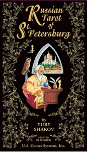 Russian Tarot of St. Petersburg was painted by Yury Shakov, an artist renowned for his lacquer miniatures and flawless depictions of Russian folk and fairy tales. This stunning 78-card deck reflects not only his superb style and artistic expertise, but also his original interpretations of the tarot, presenting traditional tarot archetypes through the imagery of Russian history and culture.